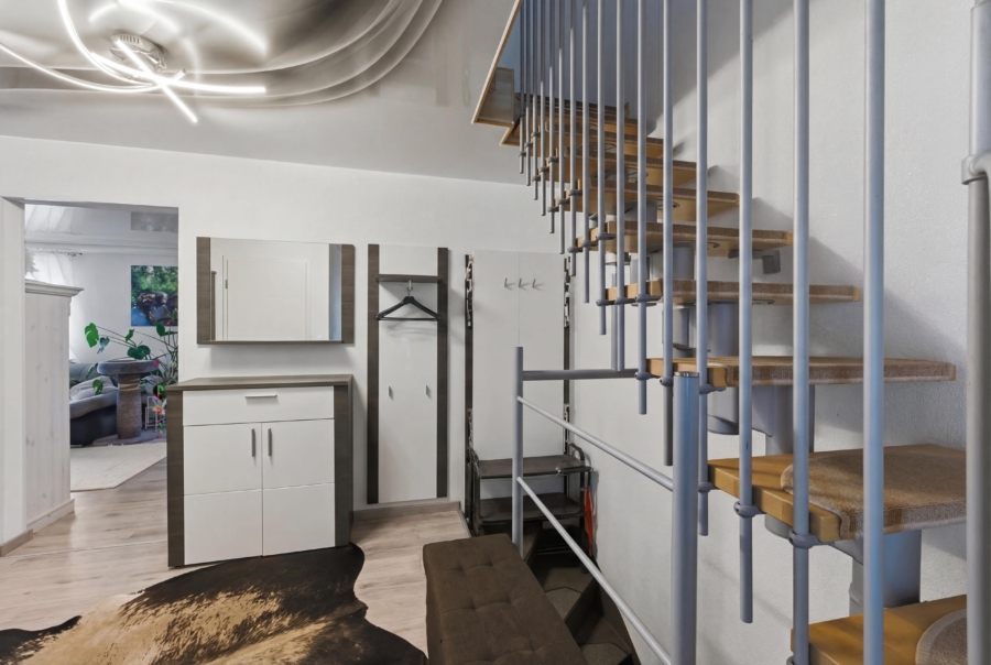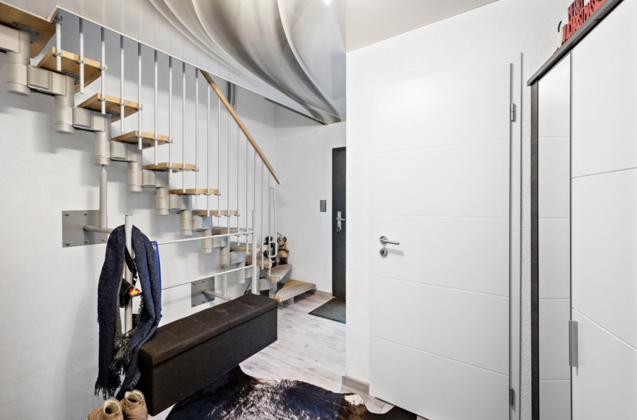 Nach Betreten des Hauses erreichen Sie über das Treppenhaus die einzelnen Stockwerke.