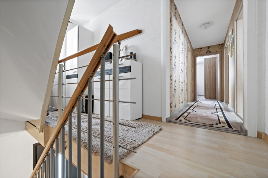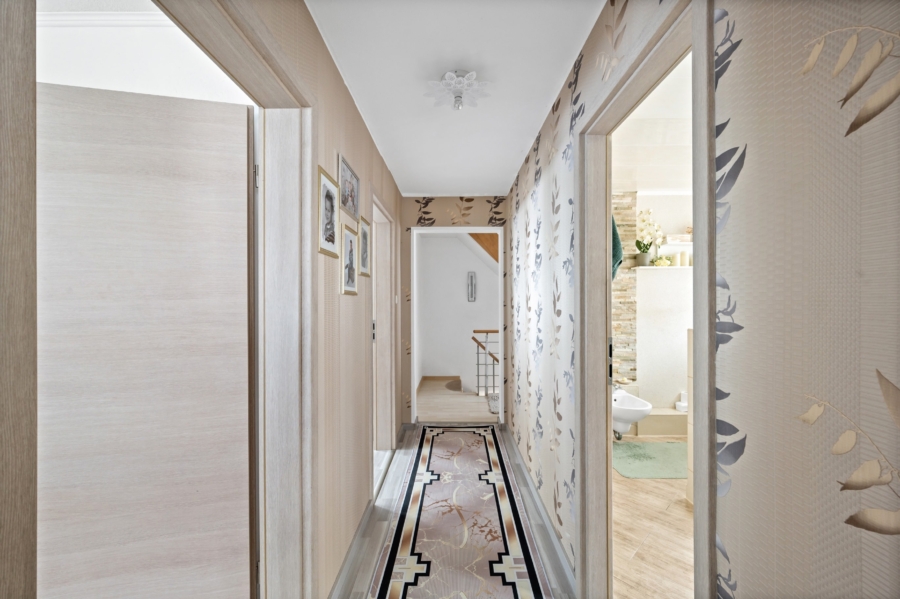 Im Obergeschoss befinden sich drei Schlafräume, sowie das Bad mit Wanne, Bidet und WC.