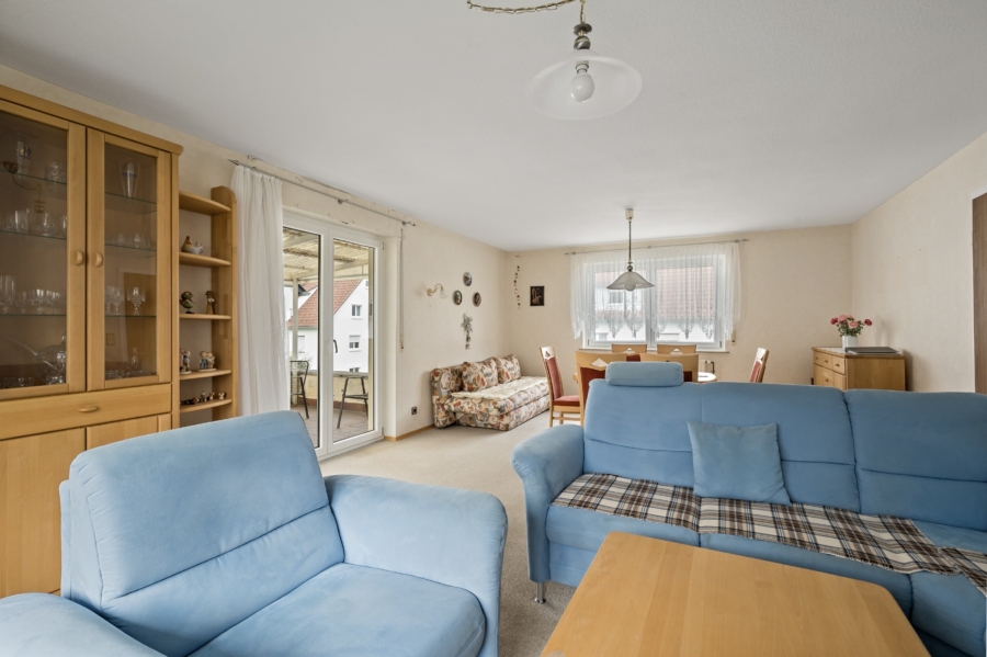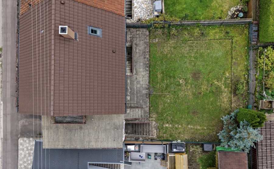 Ein echtes Highlight ist die Garage mit darüberliegender, überdachter Dachterrasse. Diese erreichen Sie bequem vom Wohnzimmer aus. Von dort aus gelangen Sie direkt in den sonnigen Garten – ein wunderbarer Ort für Ihre persönliche Auszeit oder gesellige Stunden mit Familie und Freunden.