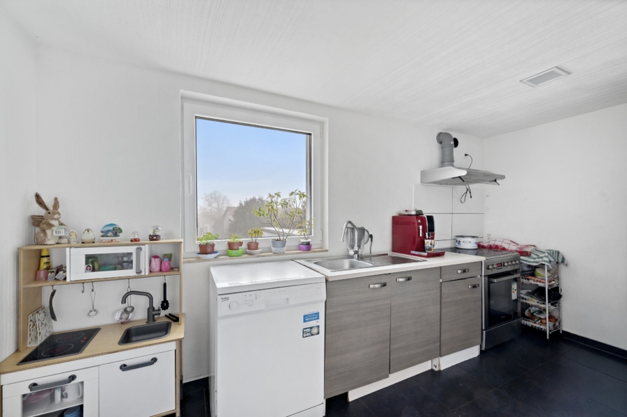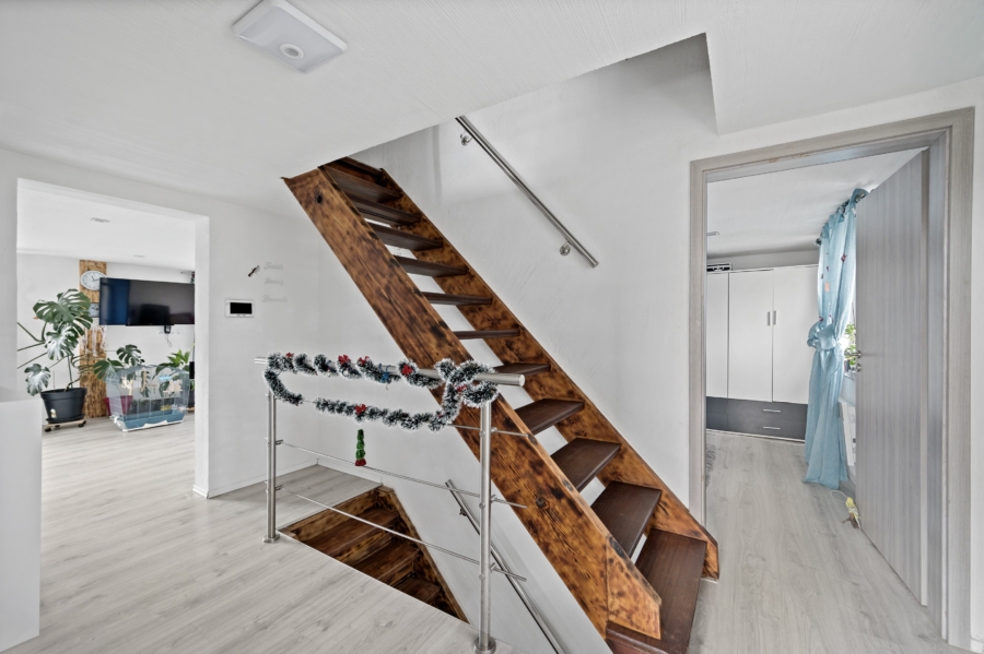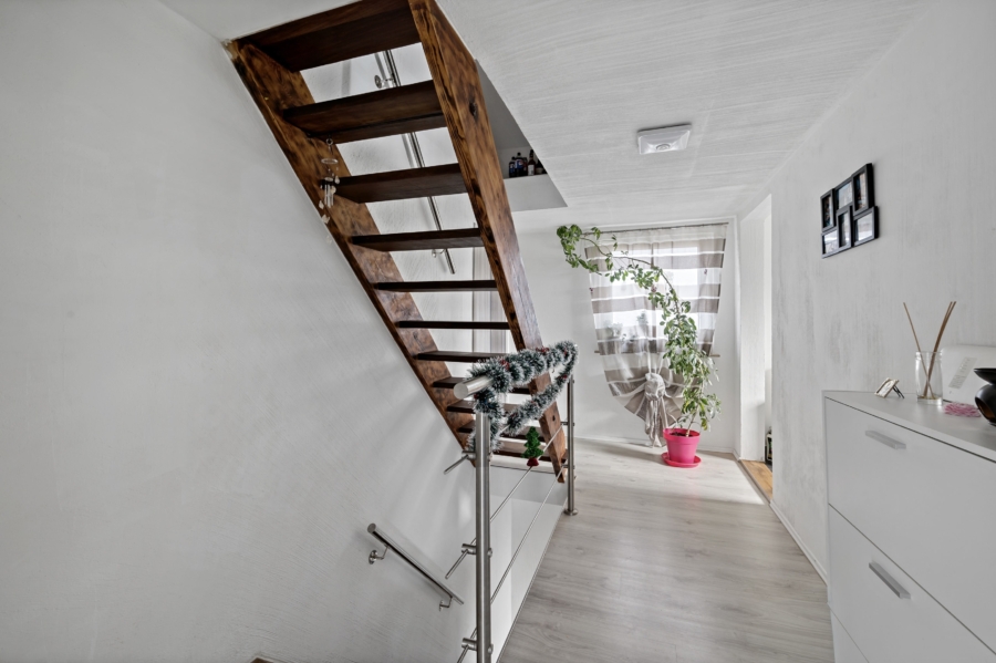 Im 2. Stock befindet sich ein weiteres geräumiges Zimmer, sowie der Aufgang zum Dachboden, welcher Platz für Stauraum bietet.