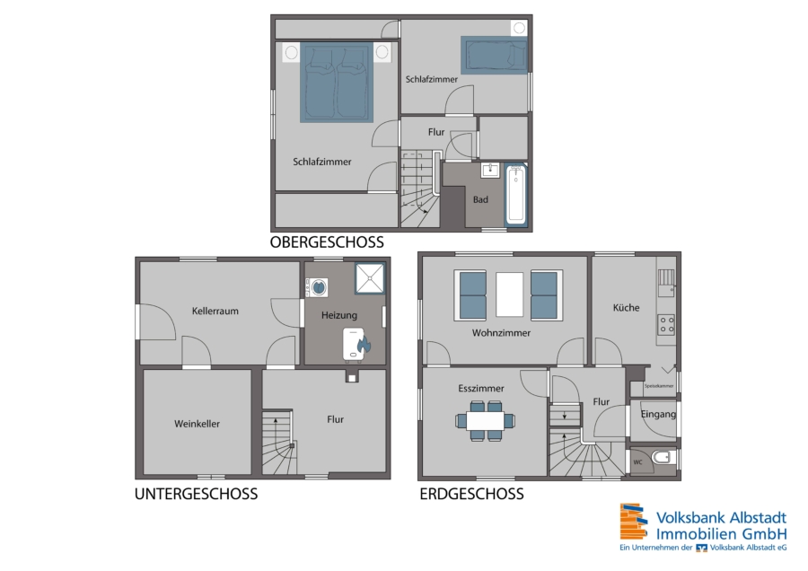 Das gesamte Gebäude ist unterkellert. Das UG bietet Ihnen ein Gewölbekeller, den Heiz- und Waschraum, sowie zwei weitere Nutzräume.
