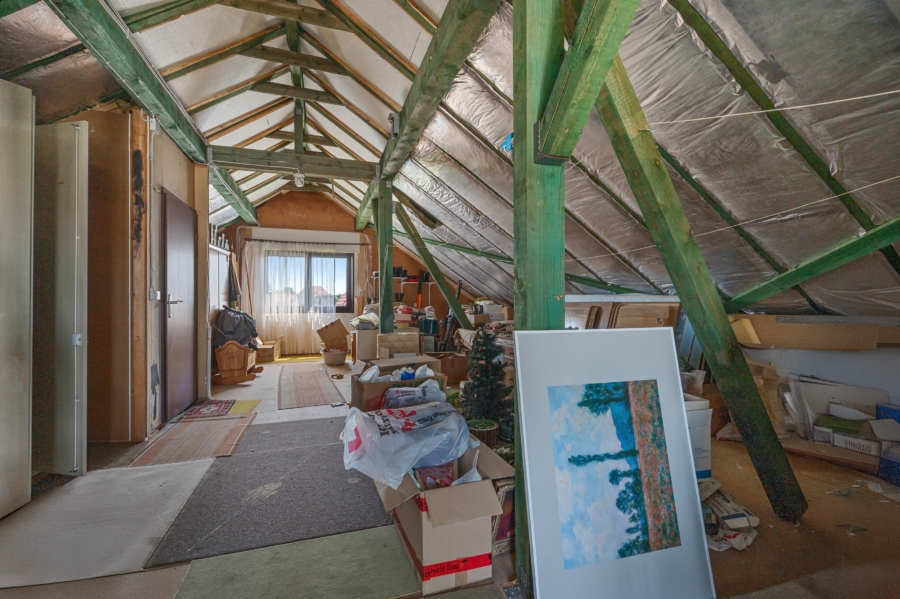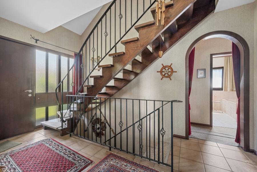 Das Haus verfügt im Erdgeschoss über 5 Zimmer, Küche, Bad, WC und eine Terrasse. Im Untergeschoss befindet sich neben einem ausgebautem Zimmer, ein Kellerraum, der Heizraum samt Öltanks und die Garage inklusive einem Abstellraum.