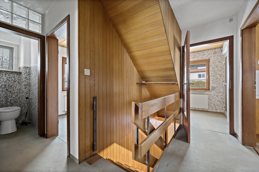 Das 1953 gebaute Einfamilienhaus verfügt über ca. 136 m² Wohnfläche verteilt auf 3 Etagen.