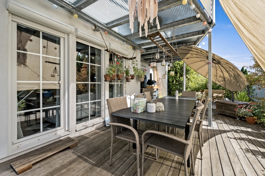 Abgerundet wird das Haus durch einen tollen Außenbereich. Der schöne Garten lädt zum Entspannen und Verweilen ein oder bietet eine hervorragende Spielmöglichkeit für Kinder.