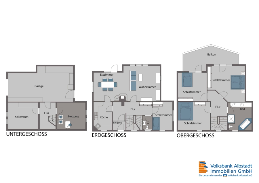 - drei Schlafzimmer, davon zwei Zimmer mit Zugang zum Balkon