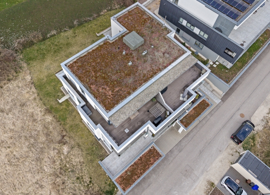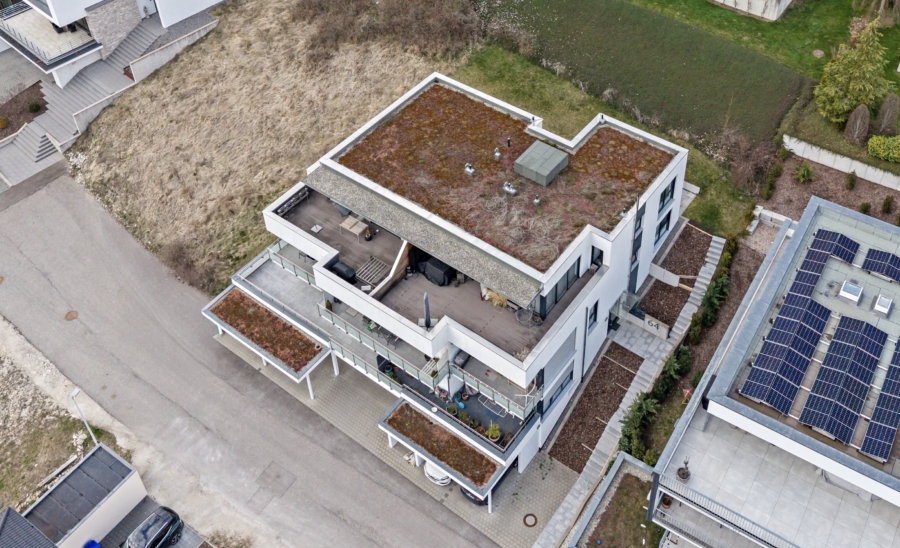 Die Wohnung befindet sich von der Straße aus gesehen im 1. Obergeschoss eines gepflegten Mehrfamilienhaus aus ca. 2018 mit nur sieben Parteien und überzeugt durch eine durchdachte und großzügige Aufteilung.