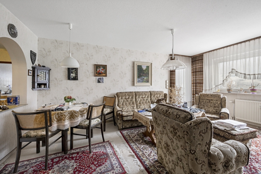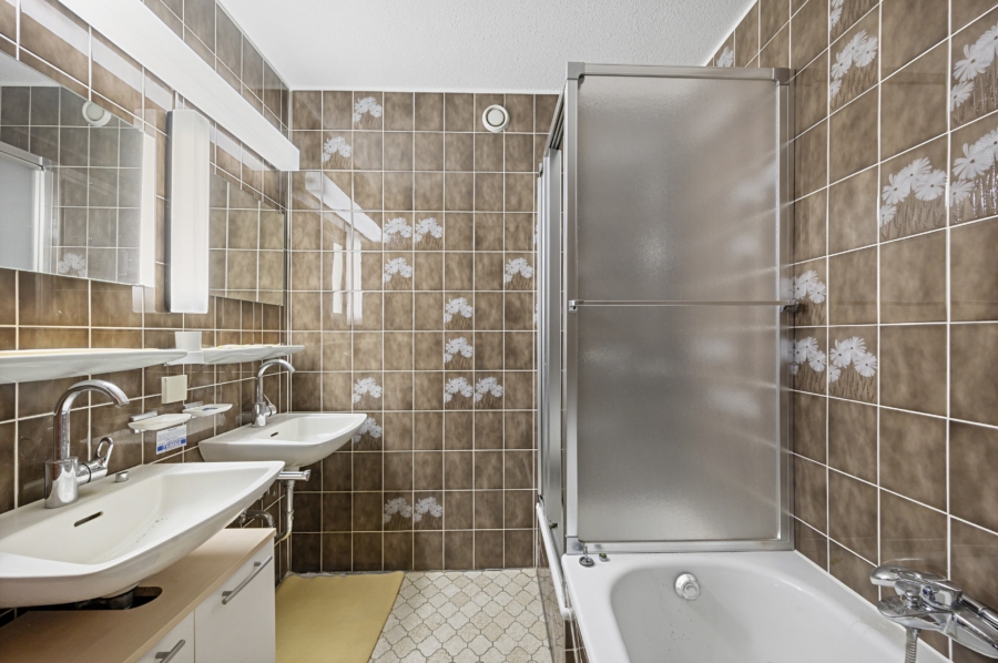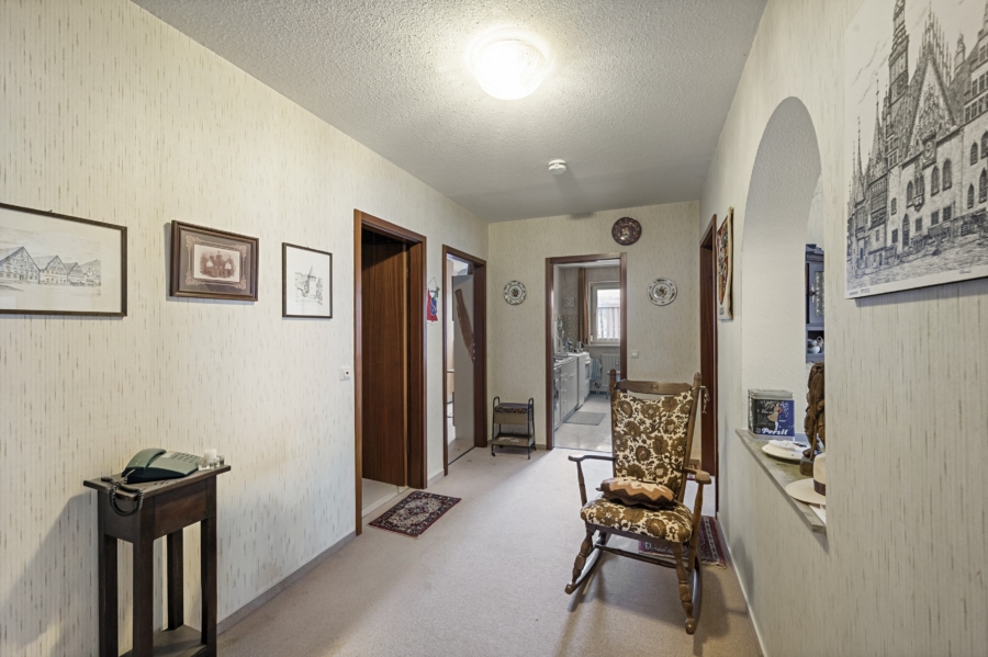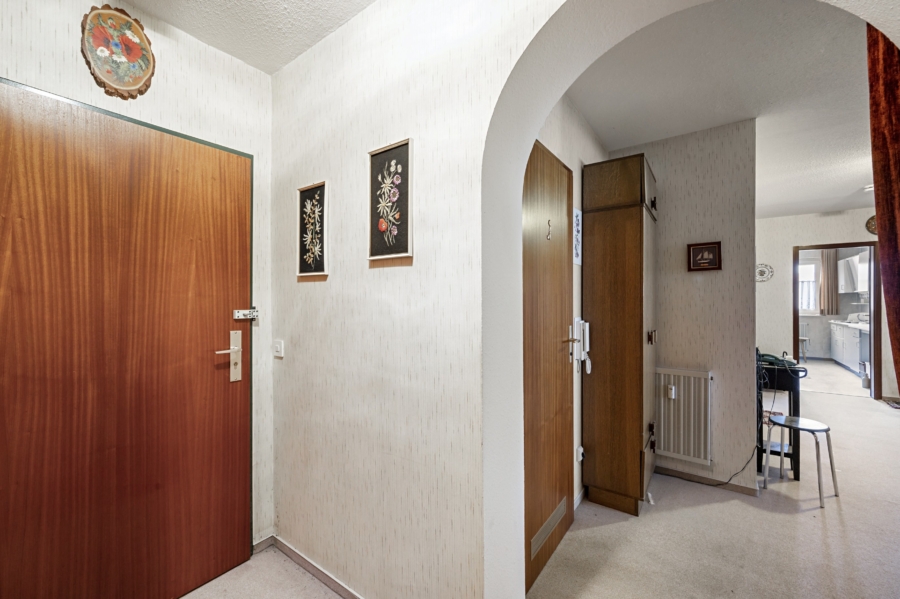 Die Wohnung befindet sich im 3. Obergeschoss eines Mehrfamilienhauses aus den 70er Jahren. Das Haus sowie die Wohnung befinden sich in einem sauberen und ordentlichen Zustand. Es ist ein Hausmeisterservice vorhanden.