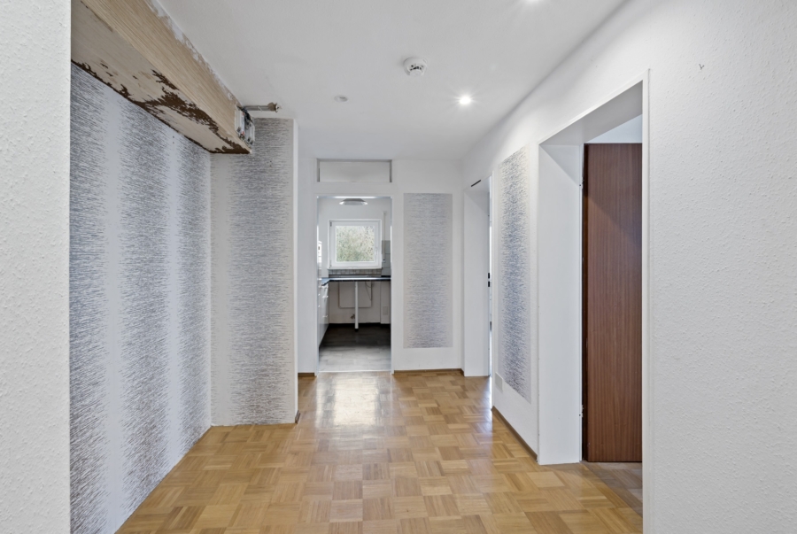 Auf ca. 91 m² Wohnfläche verteilen sich zwei Schlafzimmer, ein helles Wohn- und Esszimmer und eine separate Küche, ein Bad mit Badewanne, ein Gäste-WC und der Eingangsbereich/Windfang.