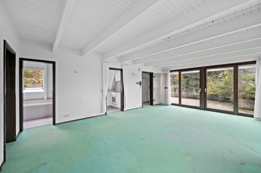 Vom Wohn- und Esszimmer aus gelangen Sie auf die überdachte Terrasse.