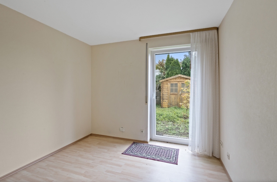 Von einem Zimmer ist der kleine Gartenanteil begehbar.